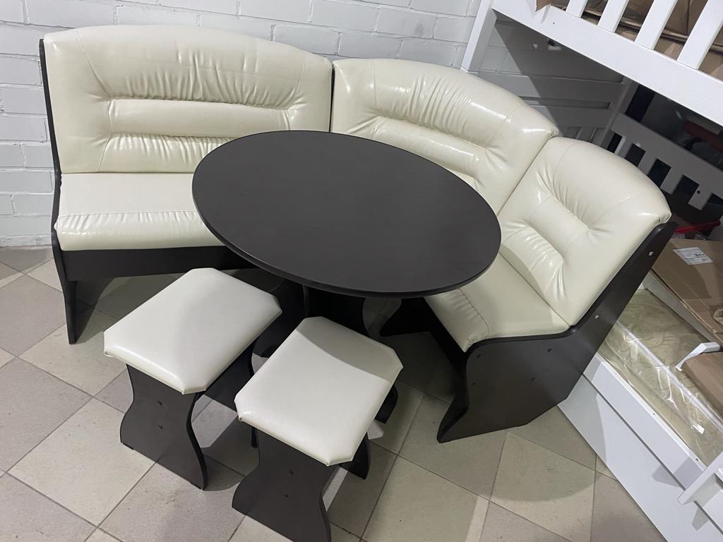 В набор входит угловая скамья, стол и два табурета. Цвет и размер на выбор.