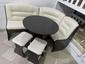 Состоит из углового кухонного дивана, обеденного стола и двух мягких табуретов. Под сиденьем находятся ящики для хранения. Универсальная сборка - право/лево.