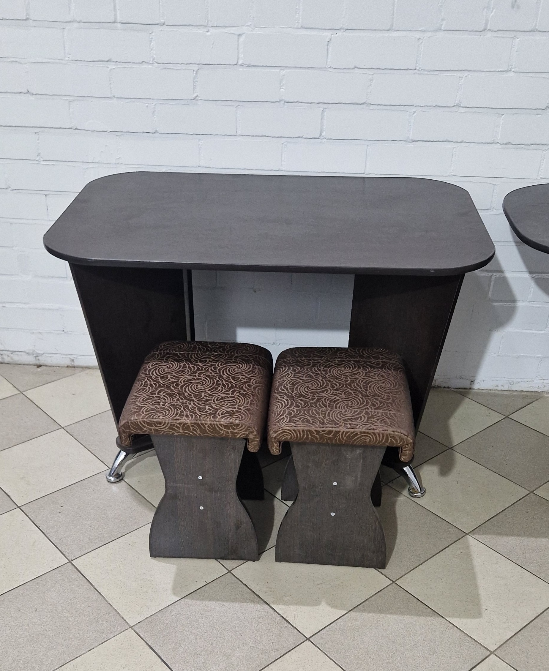 код 132707Набор включает в себя обеденный стол и 2 табурета. Разные цвета обивки.