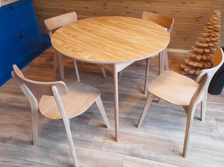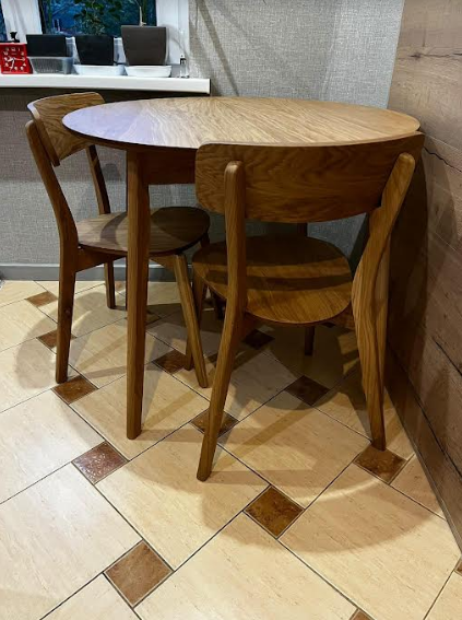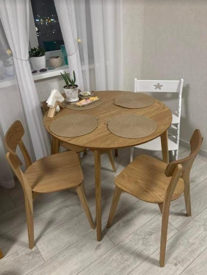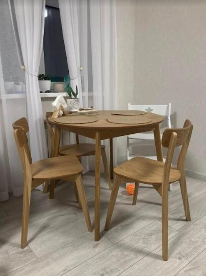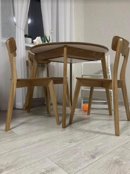 Цена указана за стол диаметром 85 или 90 см с разложением 33 см и один стул.