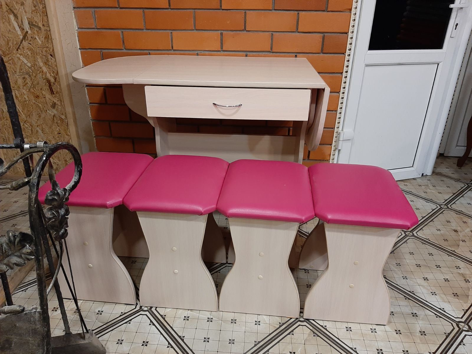 В набор входит угловая скамья, стол и два табурета. Множество вариантов цветов.