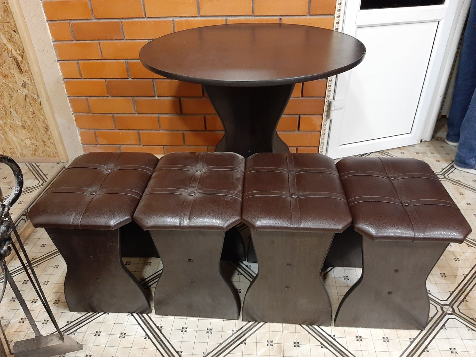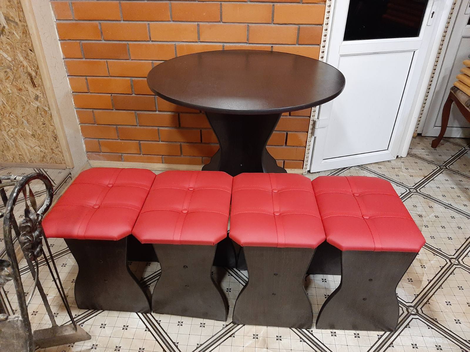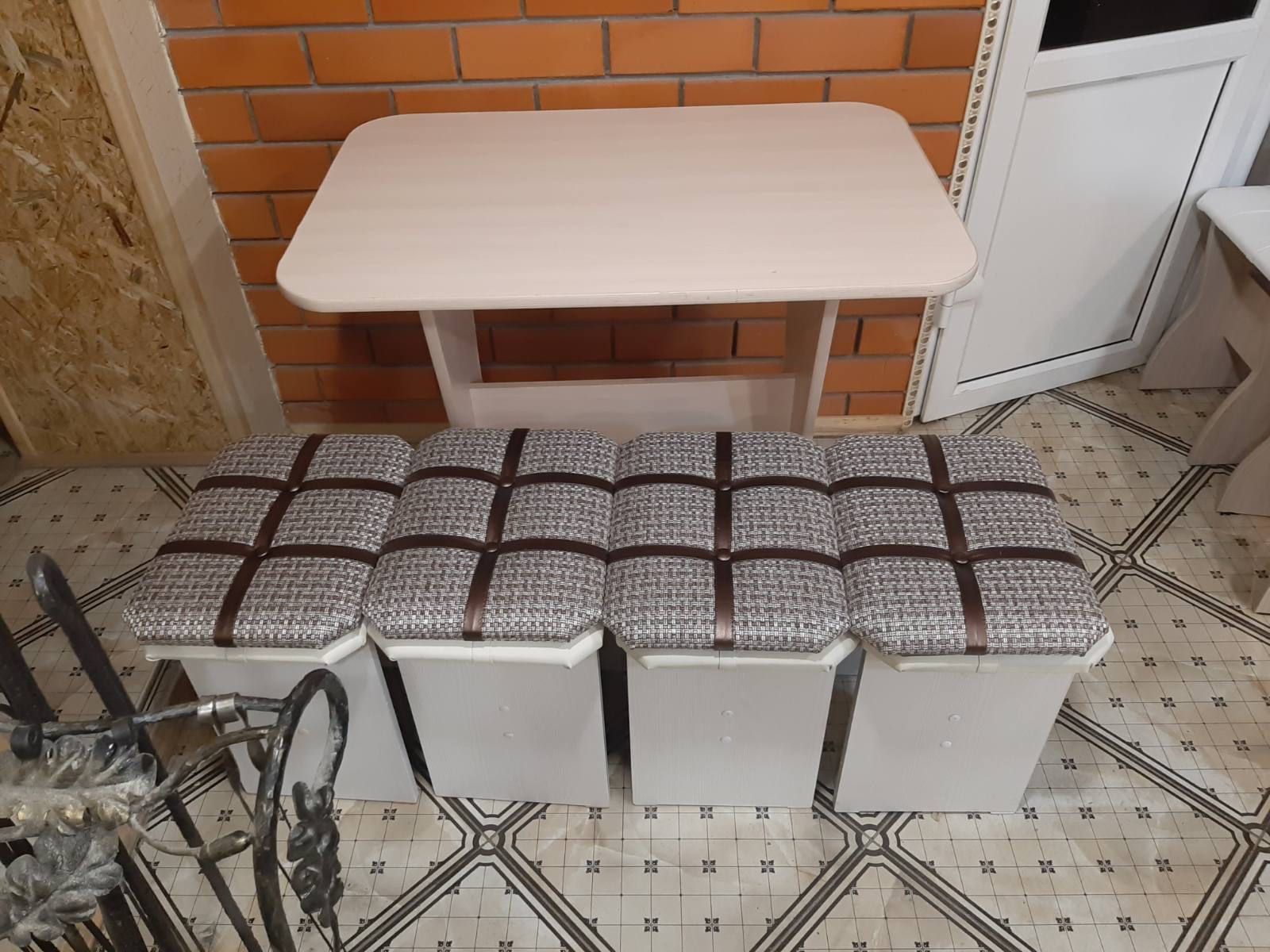 В набор входит угловая скамья, стол и два табурета. Цвет и размер на выбор.