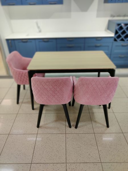 Обеденная группа со столом на металлокаркасе и 4 стульями