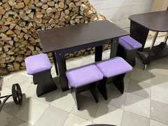 В набор входит угловая скамья, стол и два табурета. Цвет и размер на выбор.