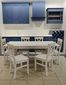 Состоит из углового кухонного дивана, обеденного стола и двух мягких табуретов. Под сиденьем находятся ящики для хранения. Универсальная сборка - право/лево.