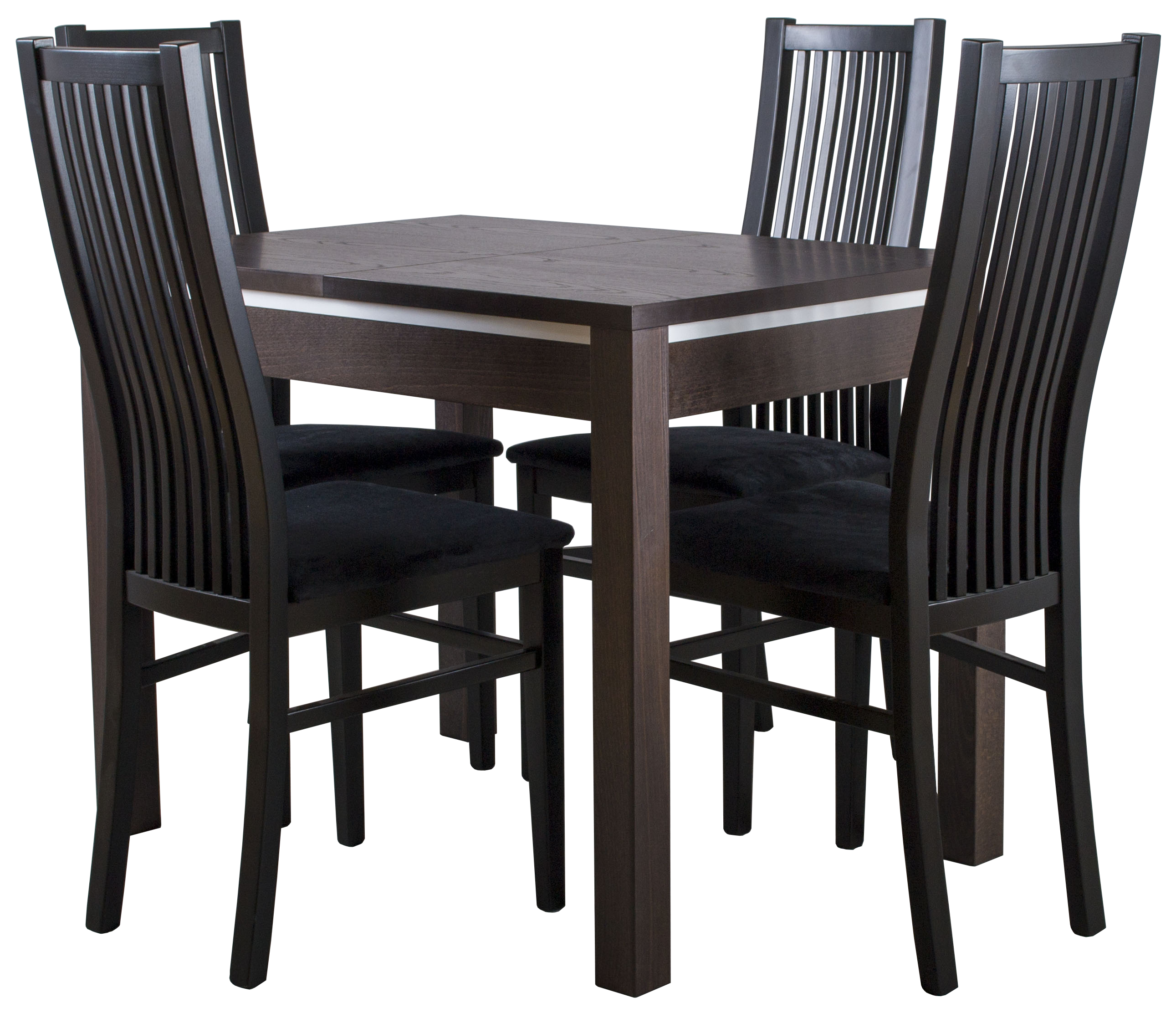 Прямоугольная столешница. Четыре стула.