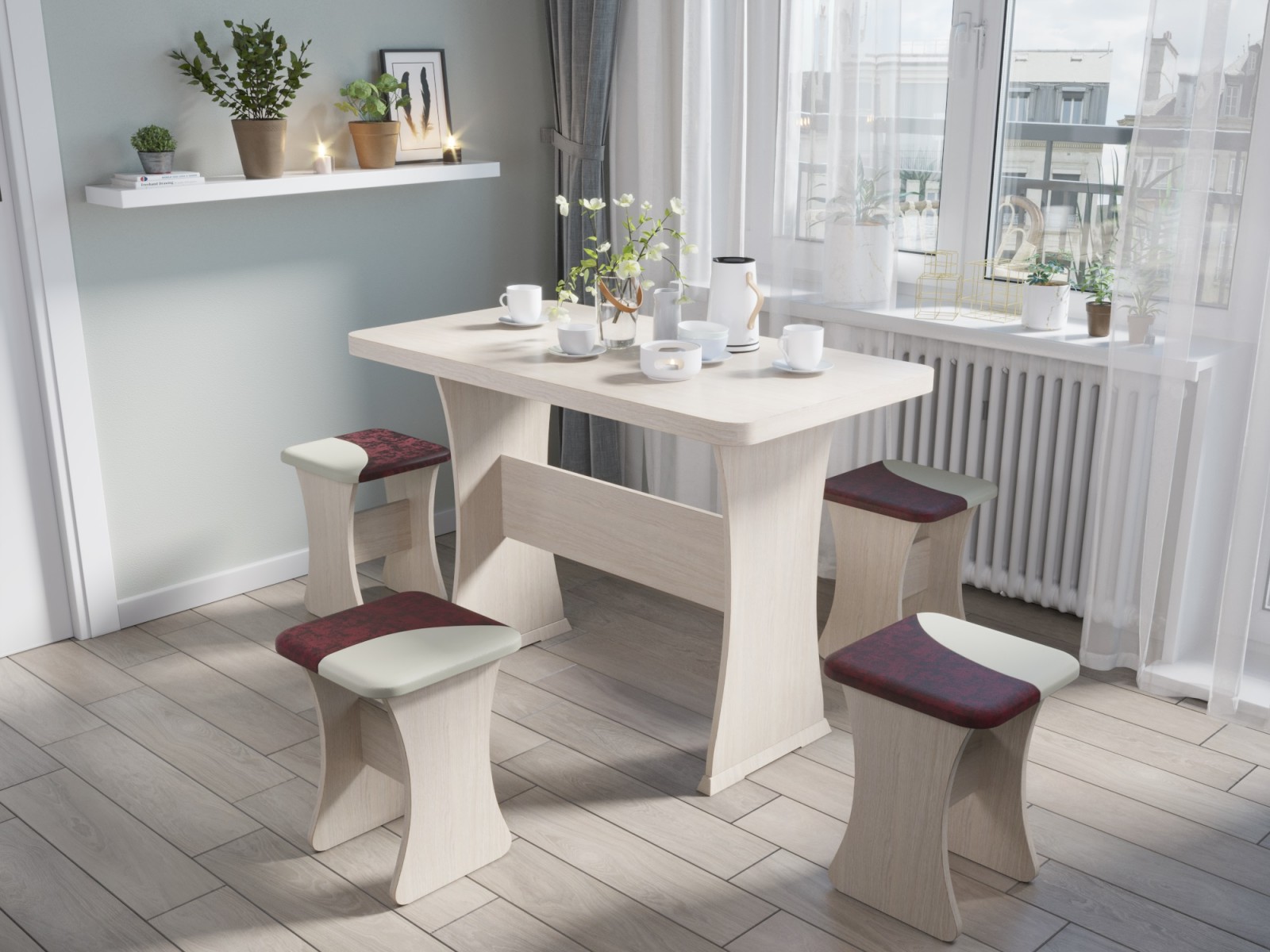 В набор входит угловая скамья, стол и два табурета. Множество вариантов цветов.