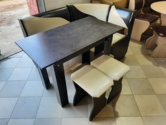 В набор входит угловая скамья, стол и два табурета. Множество вариантов цветов.