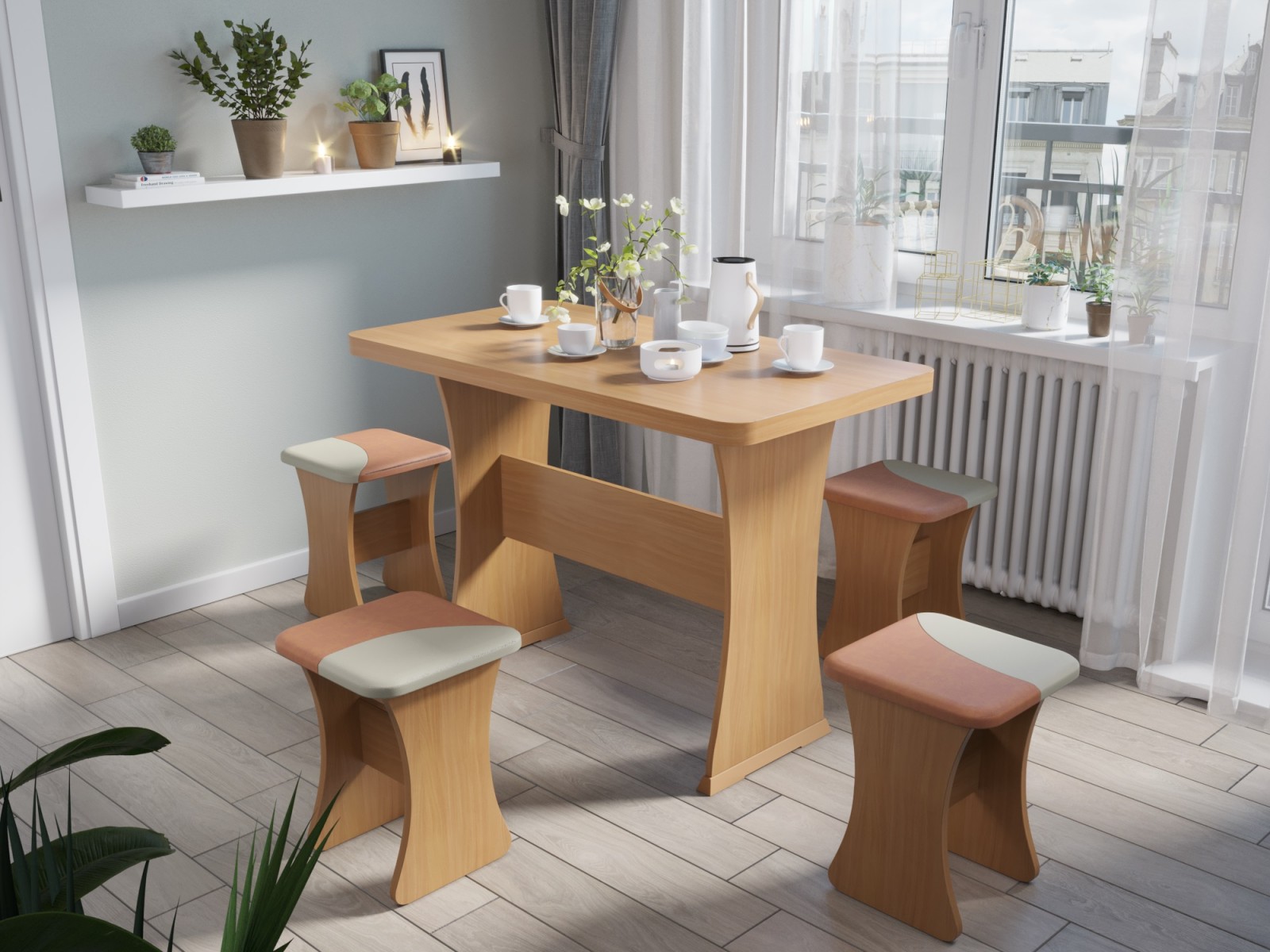 Комплектация: стол, 4 банкетки