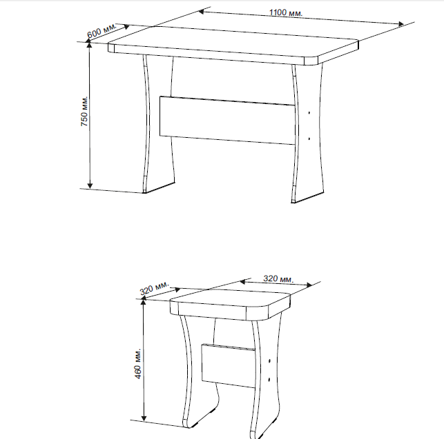 Размер стола (Ш*В*Г): 1100х600х730 мм