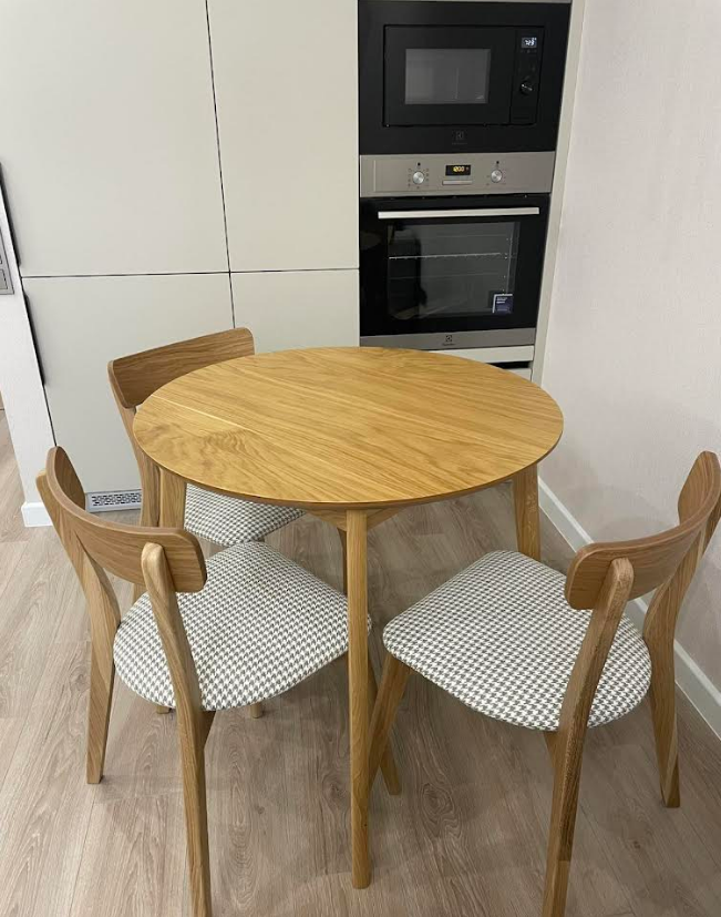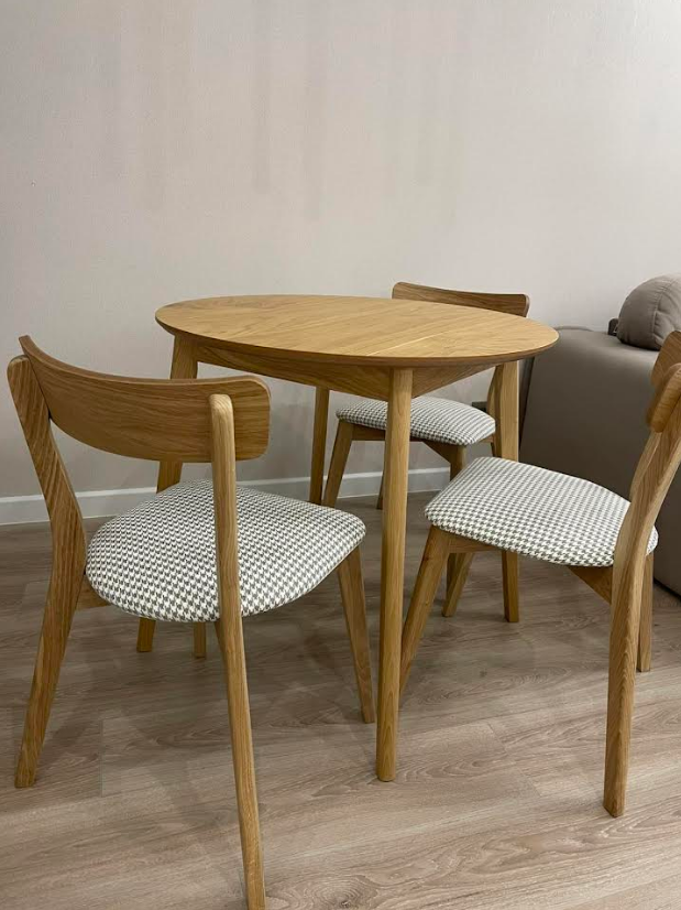 код 147264Стол: шпонированный МДФ. Стул: массив дуба с мягкой сидушкой