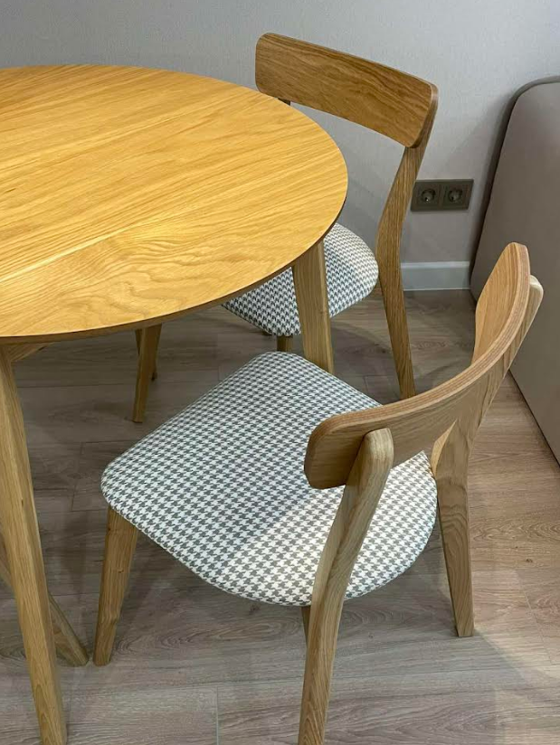 Каркас выполнен из массива дуба, который отличается высокой прочностью и долговечностью, что делает стул надёжным.