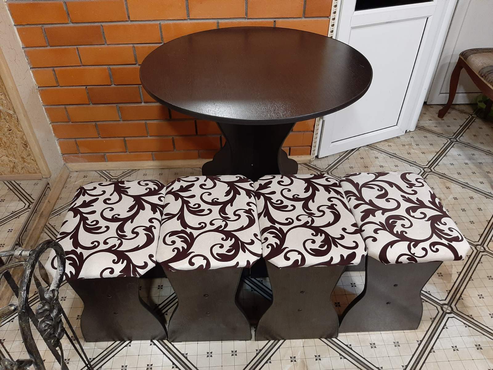 Оригинальный дизайн. Стол белый круглый. Четыре стула СТ-90.