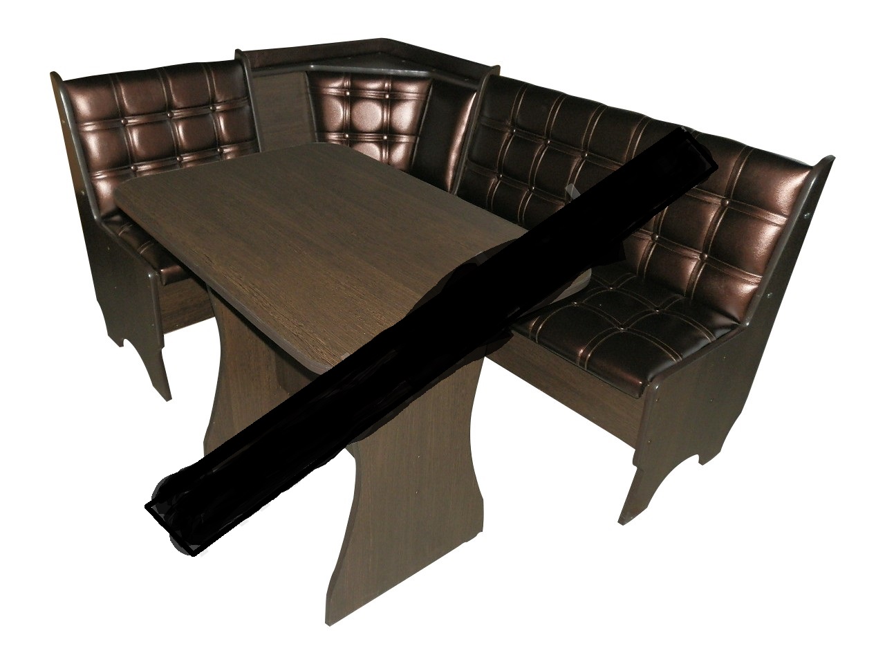 Состоит из углового кухонного дивана, обеденного стола и двух мягких табуретов. Под сиденьем находятся ящики для хранения. Универсальная сборка - право/лево.