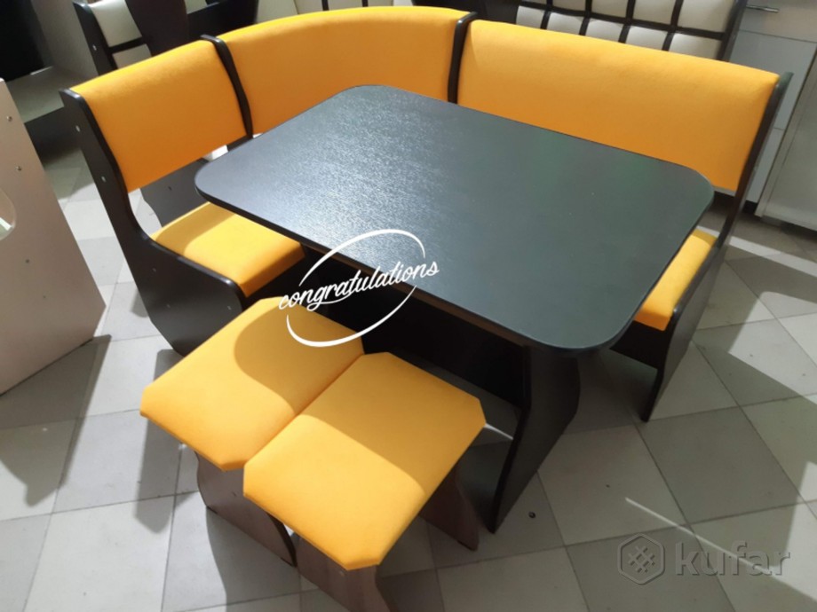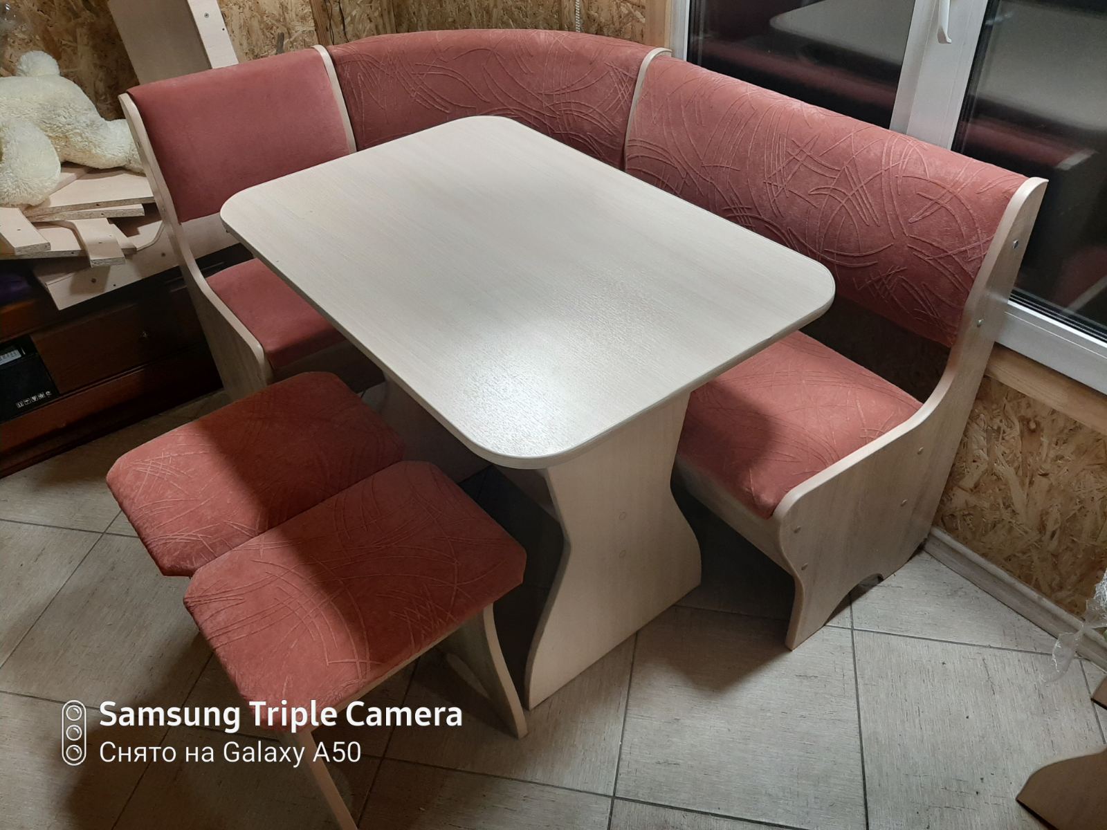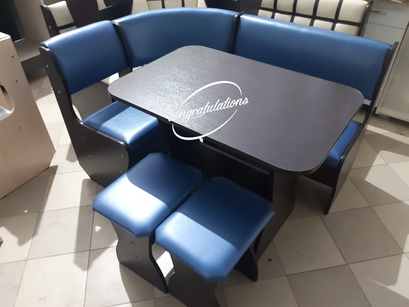 В набор входит угловая скамья, стол и два табурета. Множество вариантов цветов.