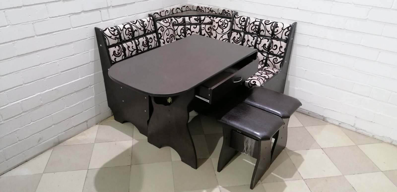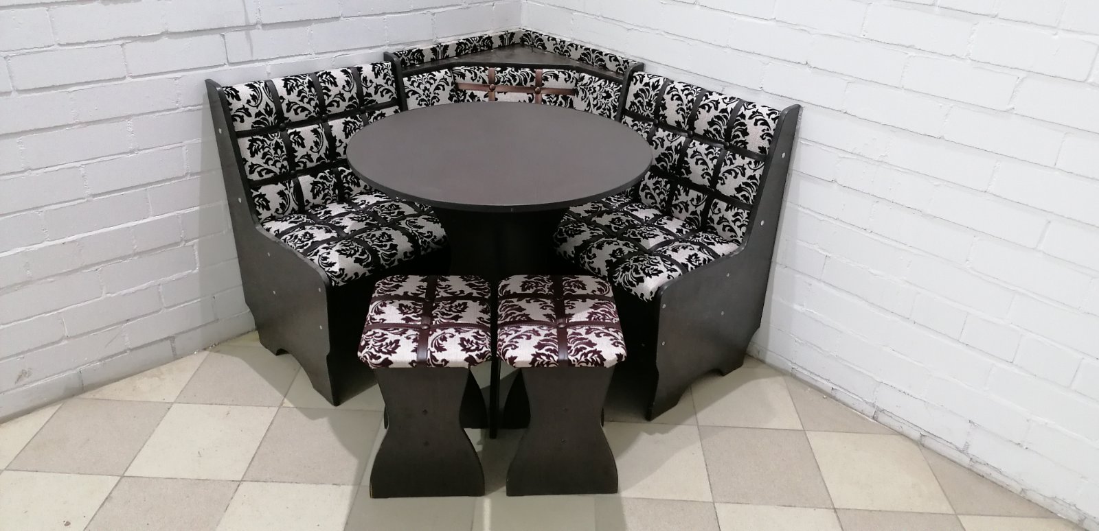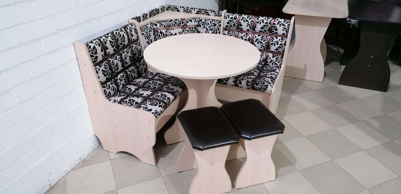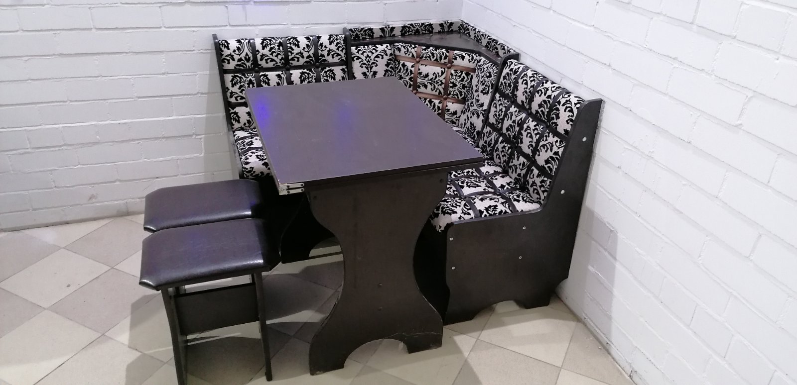 В набор входит угловая скамья, стол и два табурета. Множество вариантов цветов.