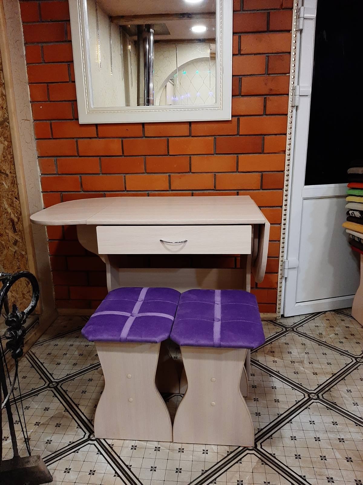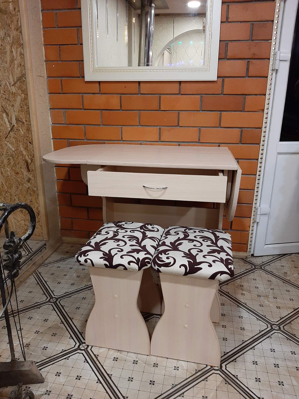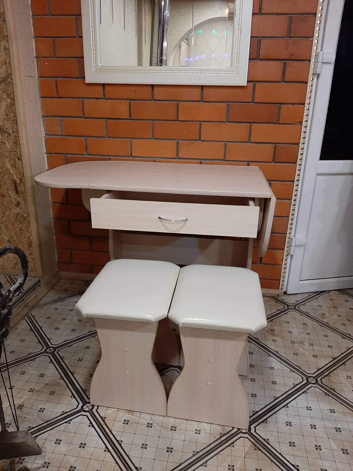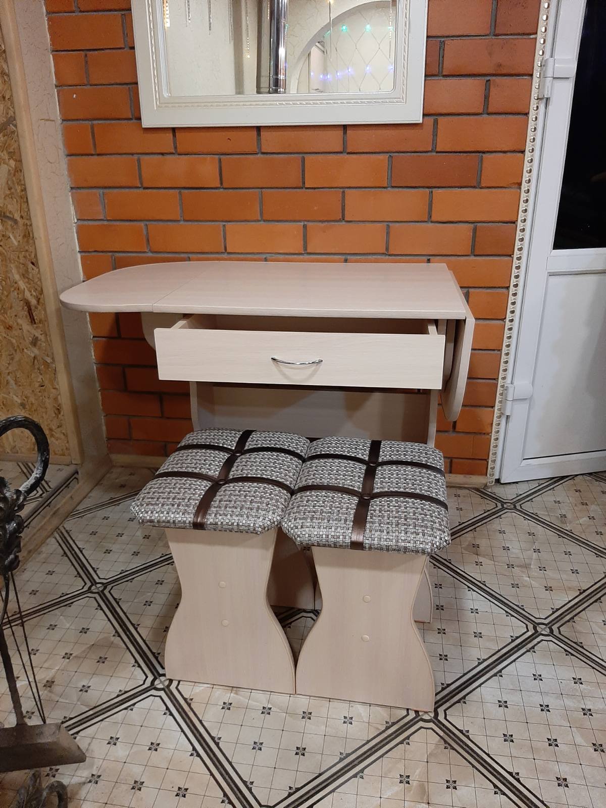код 106160В набор входит раскладной стол с выдвижным ящиком и два табурета.