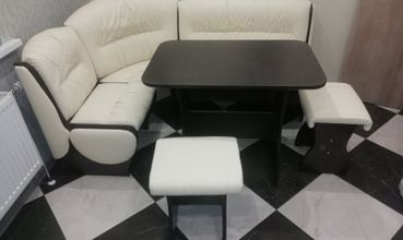 код 106169Стильный и современный дизайн. Мягкий уголок со столом и двумя табуретами.