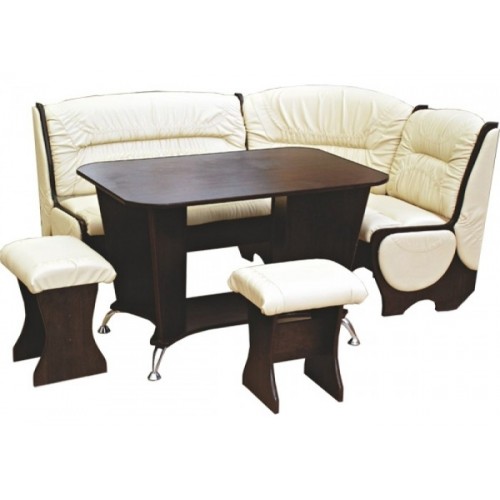 Комплект: угловая кухонная скамья, стол и два табурета.