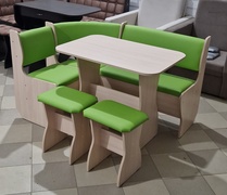 В набор входит угловая скамья, стол и два табурета. Множество вариантов цветов.