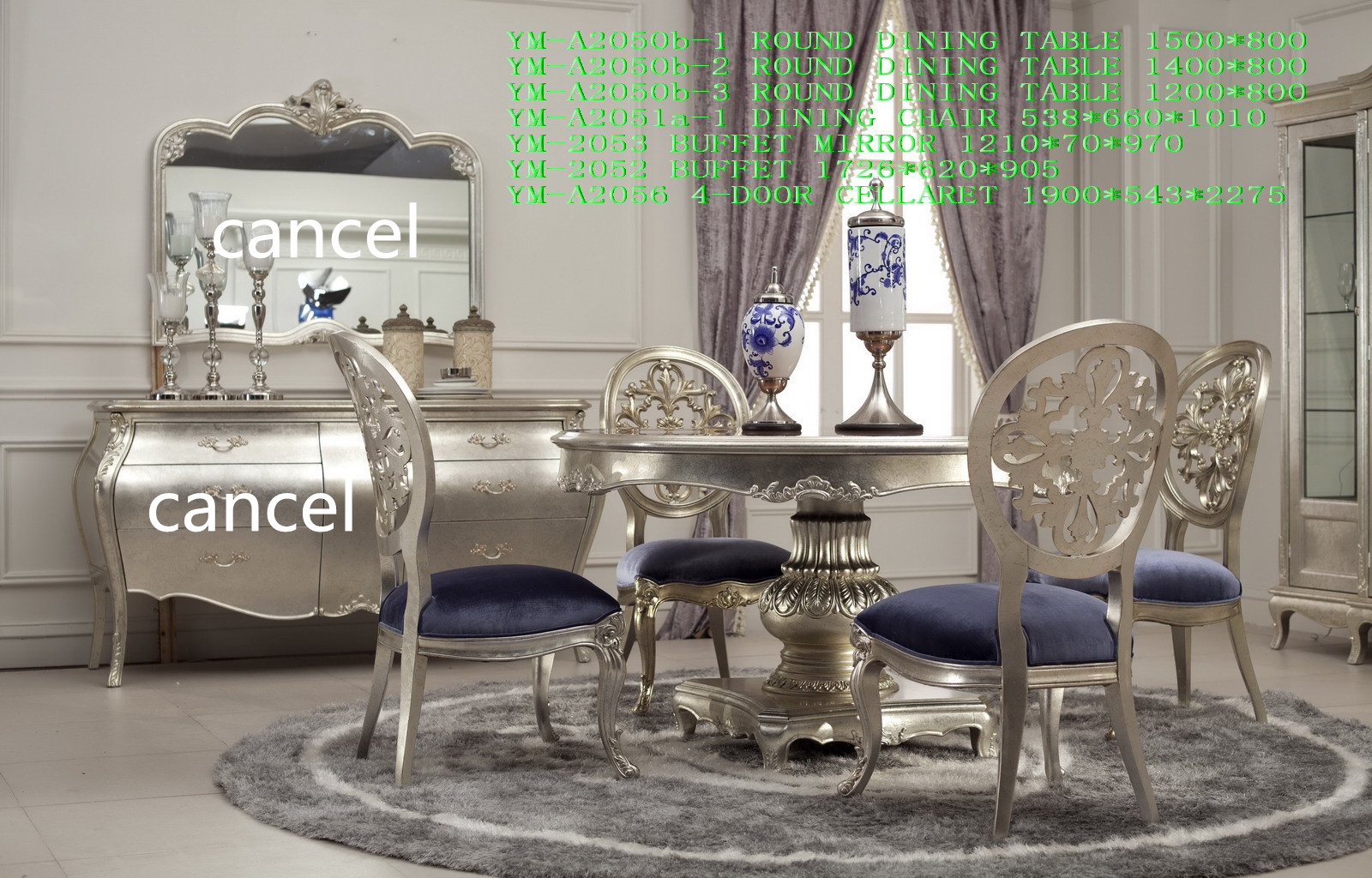 Стильный классический набор для столовой с элегантными гнутыми ножками и фасадами, резными элементами, серебристой эмалью.