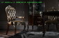 Обивка стульев выполнена в коричневом цвете и декорирована пуговицами.