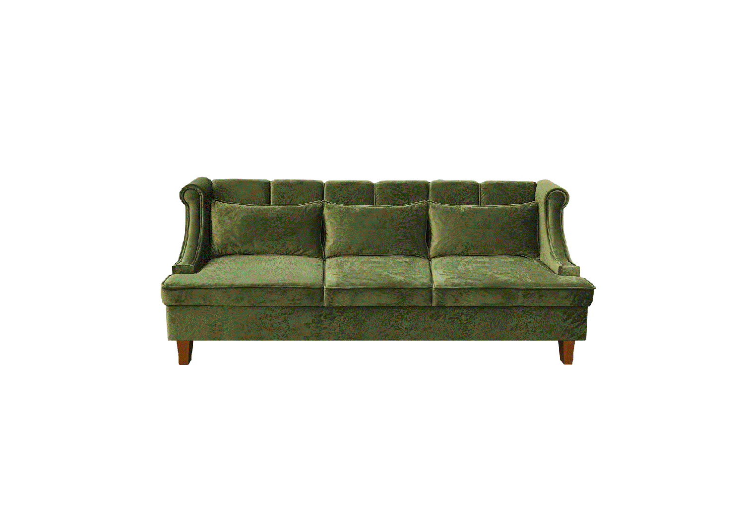 Габариты 2100×750×950 мм. Насыщенный темно-зеленый цвет, рельефная спинка и подлокотники.
