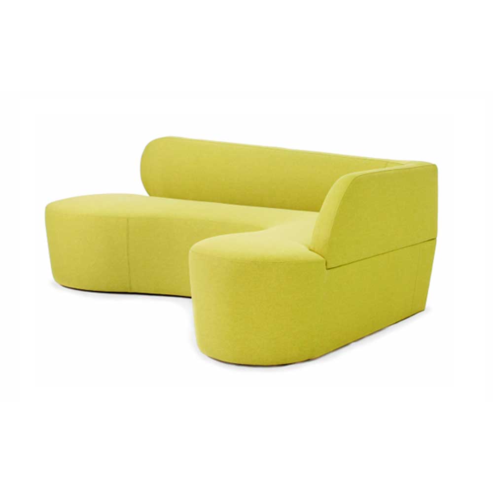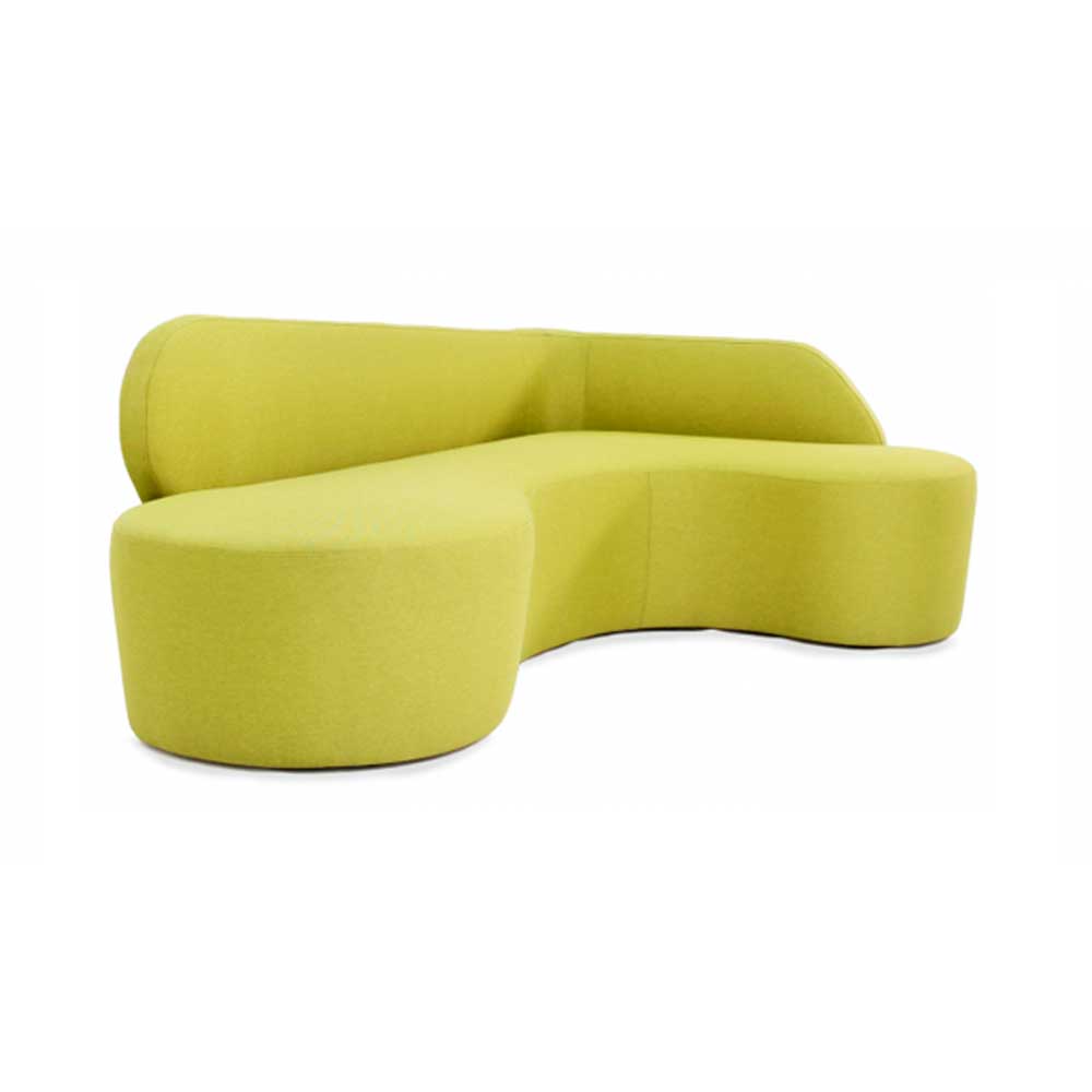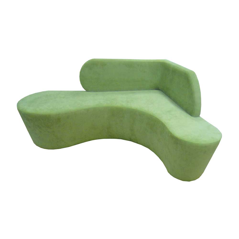 Необычный угловой диван в стиле постмодернизма прекрасно подойдет как для кухни, так и для гостиной, найдет применение в домашнем, террасном или даже в деловом интерьере. Фигурный профиль с угла обрамлен компактной спинкой, оставляя выступающие сегменты сиденья по краям. Единый корпус обит в бархатистую обивку, цвет которой можно выбрать из широкого ассортимента.