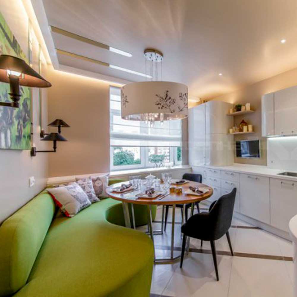 Кухонный диван необычной формы, сделанный специально под заказ для клиента на основе дивана в одном из выпусков передачи "Квартирный Вопрос" на канале НТВ, форма и размеры подобраны под размеры помещения.