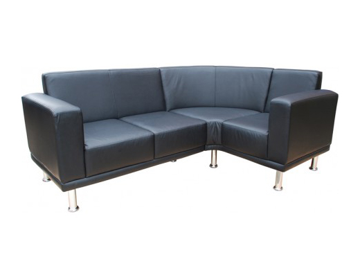 Угловой диван «Милан» расположен на высоких хромированных опорах. Он отлично впишется в офисное помещение. Дизайн лаконичен и прост, без каких-либо изысков. Каркас выполнен из прочных и качественных материалов – фанеры, арголита, бруса.