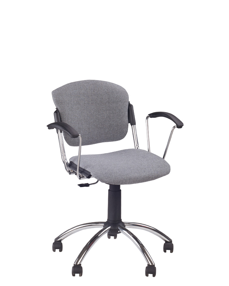 От правильного выбора офисного стула во многим зависит качество трудового процесса. Данная модель стула имеет улучшенную эргономику и позволяет долгое время находится на рабочем месте не чувствуя усталости. Модель оборудована регулятором высоты сидения и угла наклона спинки. Для повышения комфорта установлены подлокотники, колесики и поворотный механизм, позволяющие быстро менять положение в пределах рабочего стола.