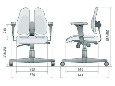 Спинка кресла Leaders DD-250G обито эко-кожей, материалом, который не многим уступает натуральной коже, а внешне едва отличи от неё. Спинка кресла состоит из двух независимых «лепестков», которые могут двигаться в разных направлениях, обеспечивая свободное движение спины. Кресло имеет различные возможности регуляции под антропометрические особенности человека. Доступен режим качания с фиксацией спинки под любым углом наклона к полу.