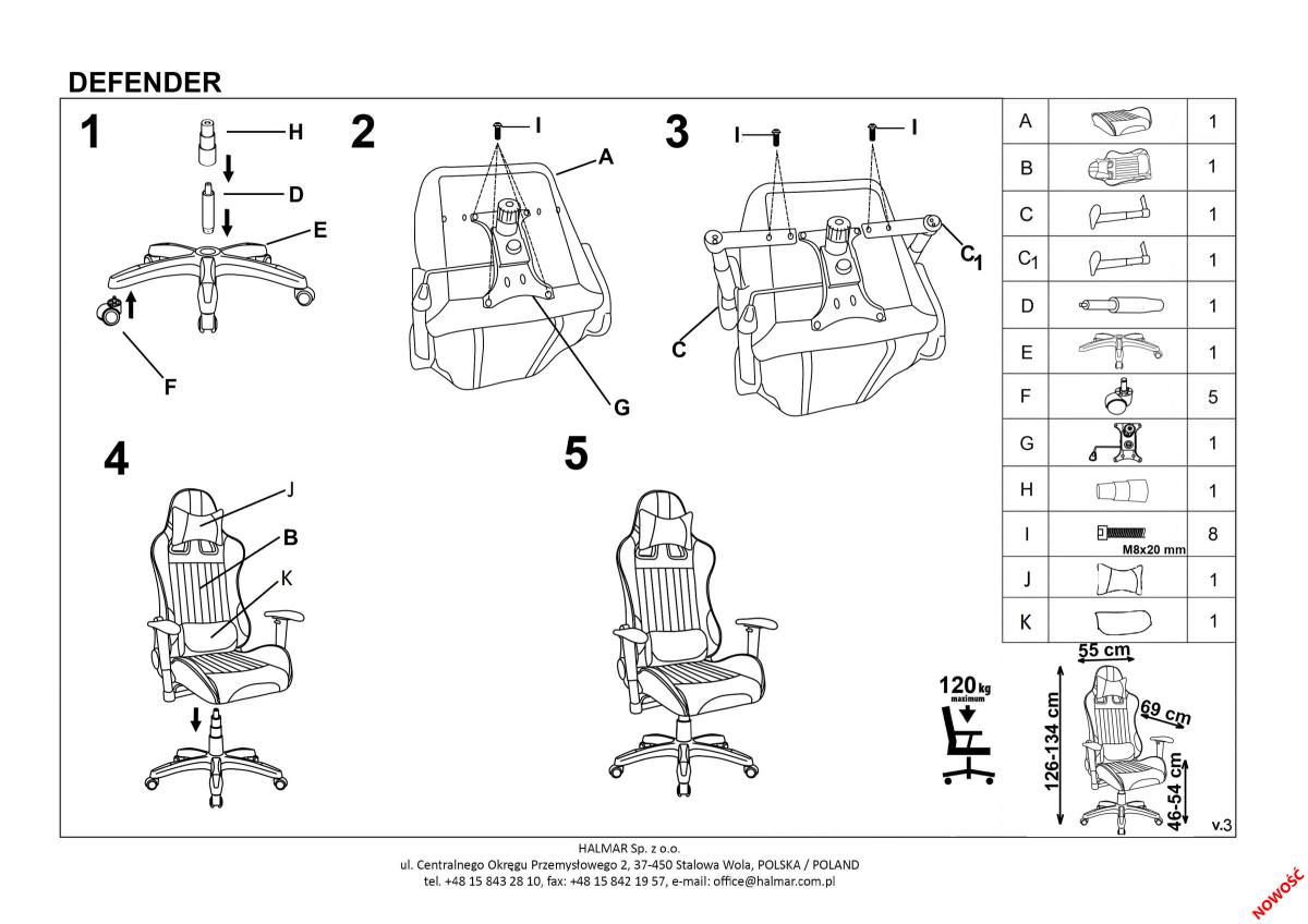 Кресло компьютерное «Halmar DEFENDER» (черный/красный)