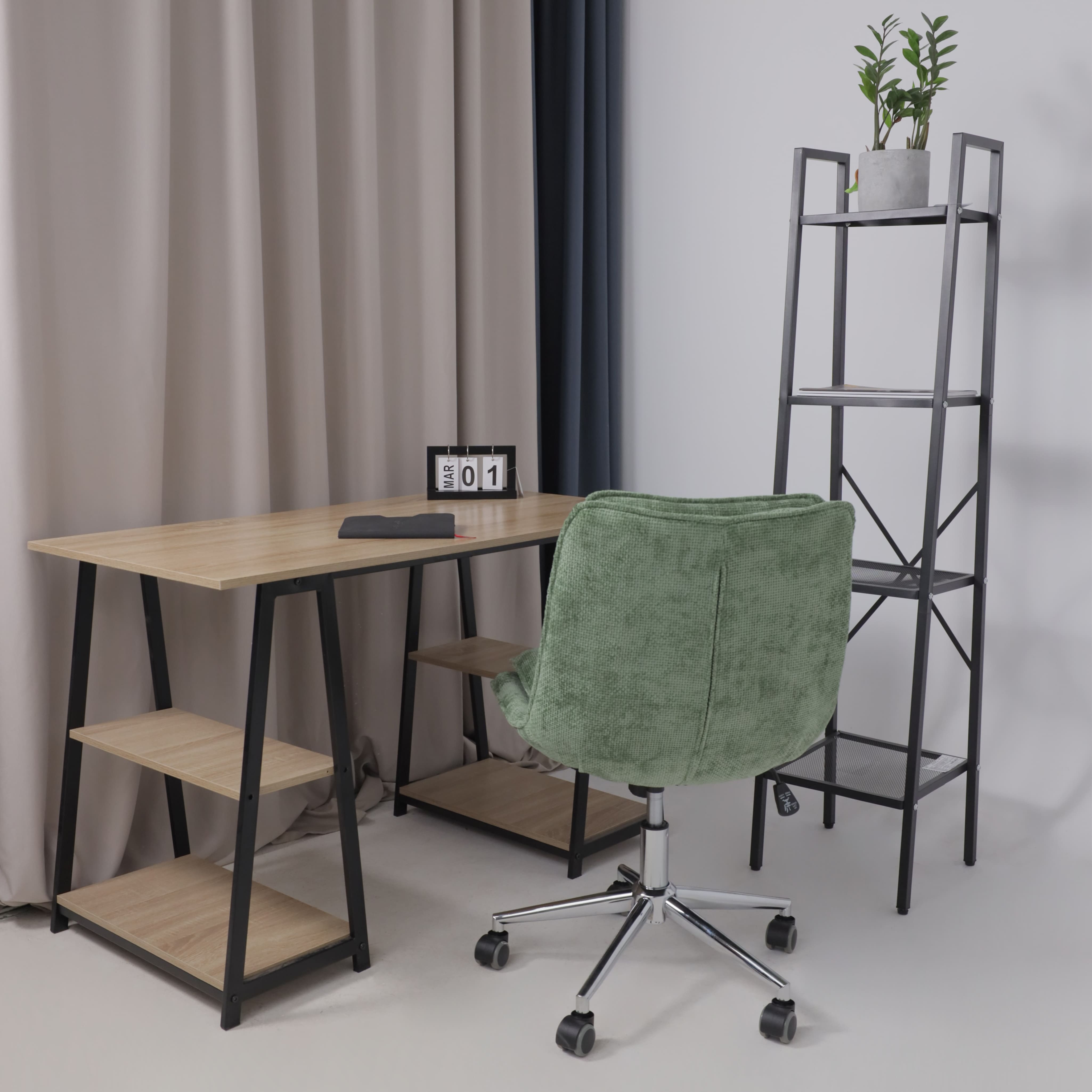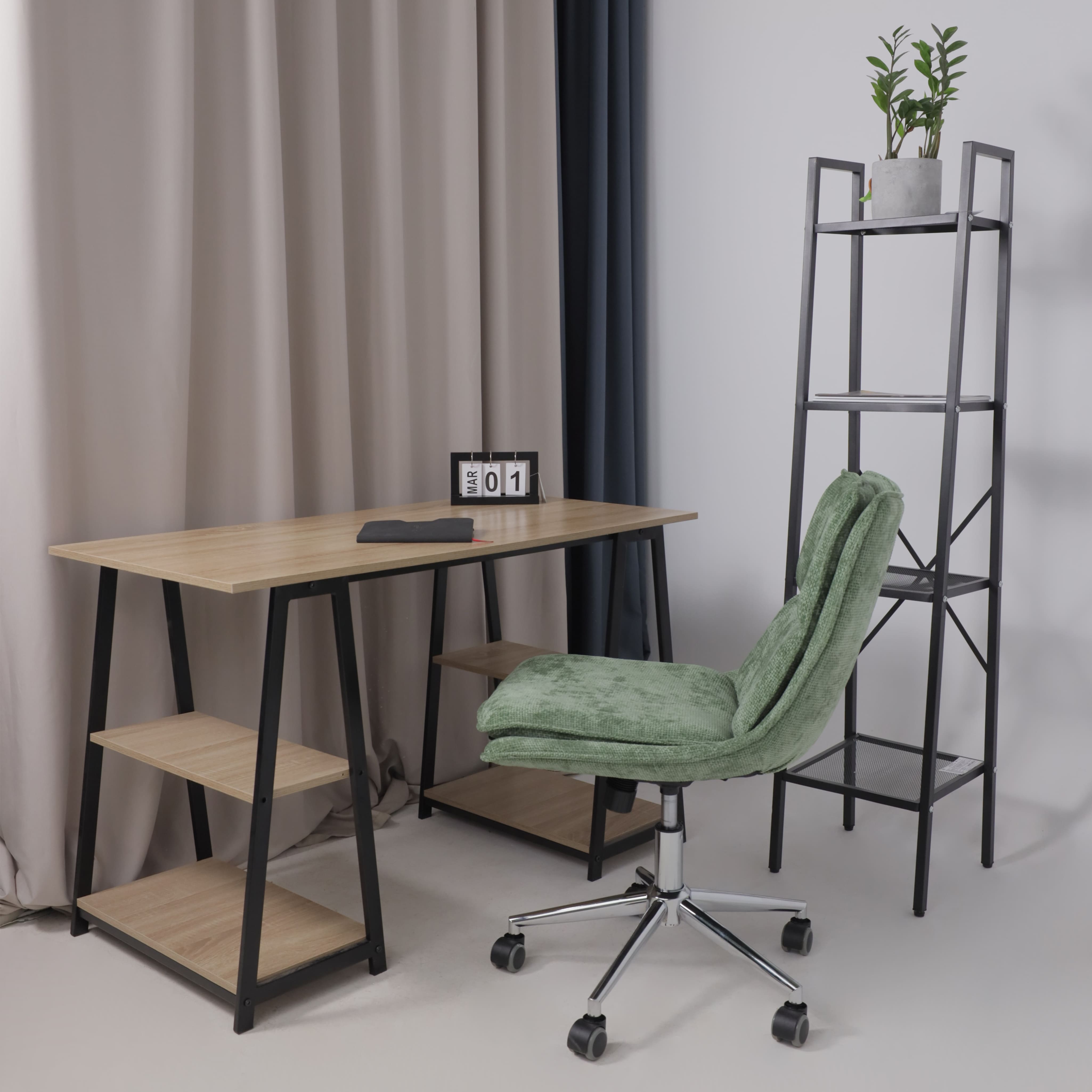 Металлическая крестовина. Серая обивка.