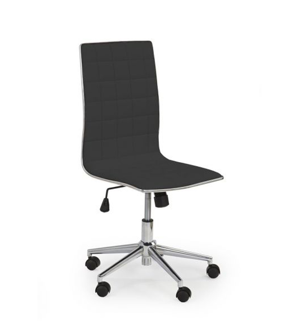 Офисное кресло «Halmar Tirol» обтянуто качественной экокожей, декорированной декоративной стяжкой. Блеск хромированных элементов прекрасно сочетается с матовой поверхностью обивки. модель оснащена современной системой качания TILT и регулировкой по высоте – газлифт.