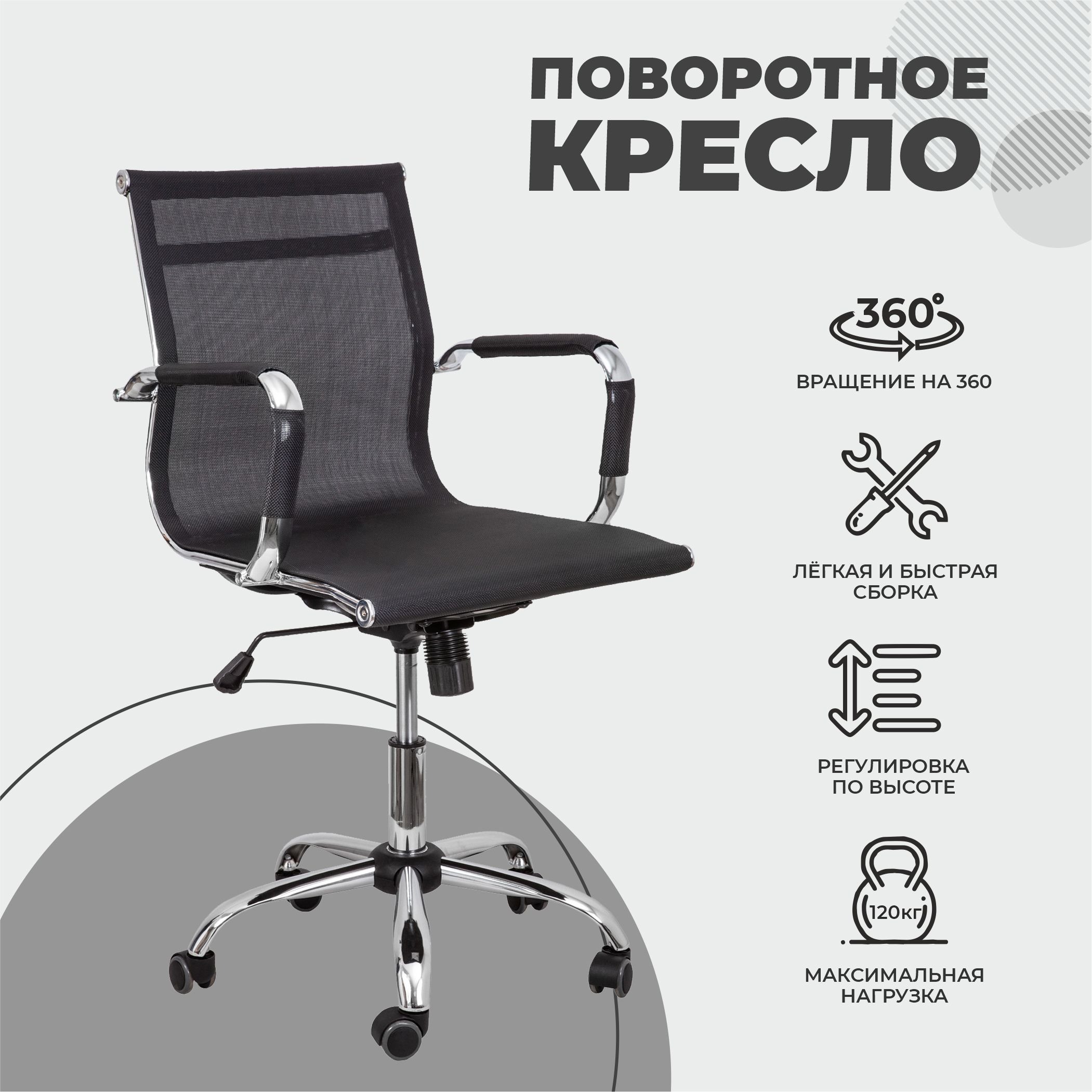 Кресло поворотное «ADEL» NEW, сетка-черная