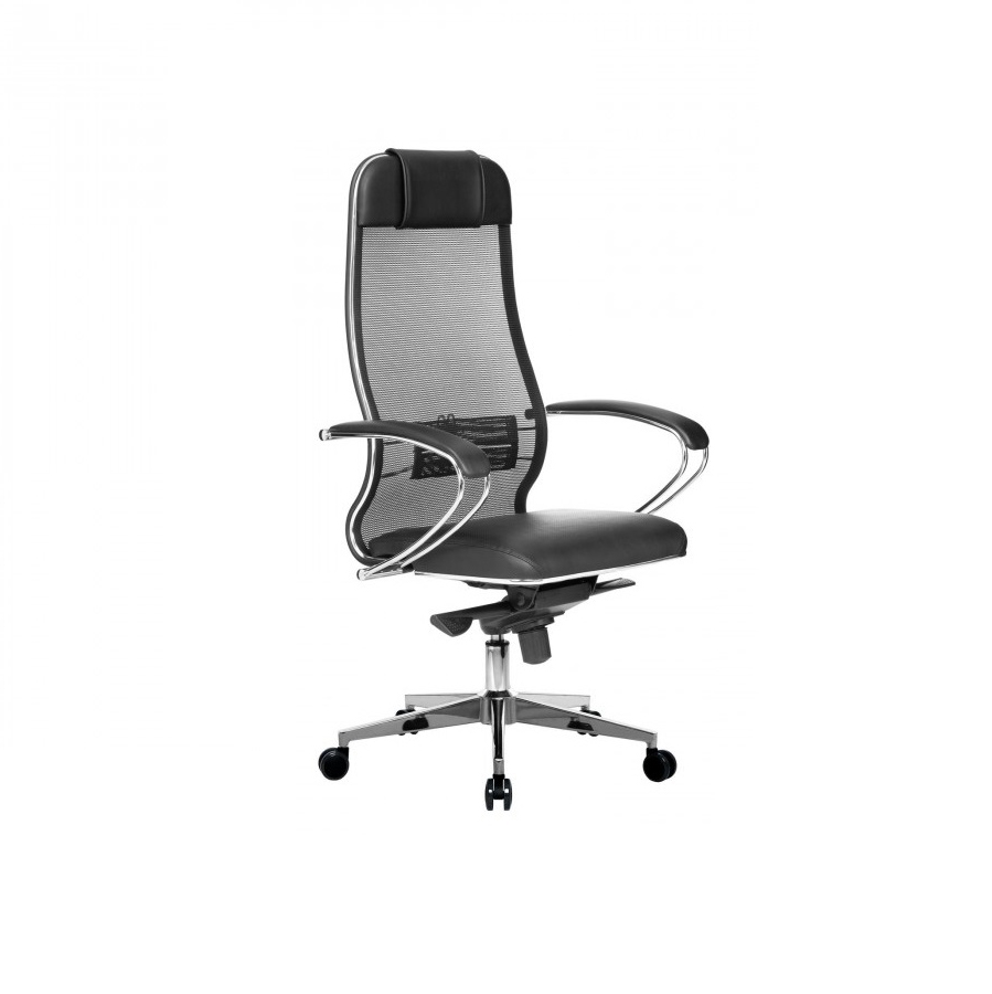 — высокая натяжная сетчатая спинка кресла с мягким накладным подголовником;