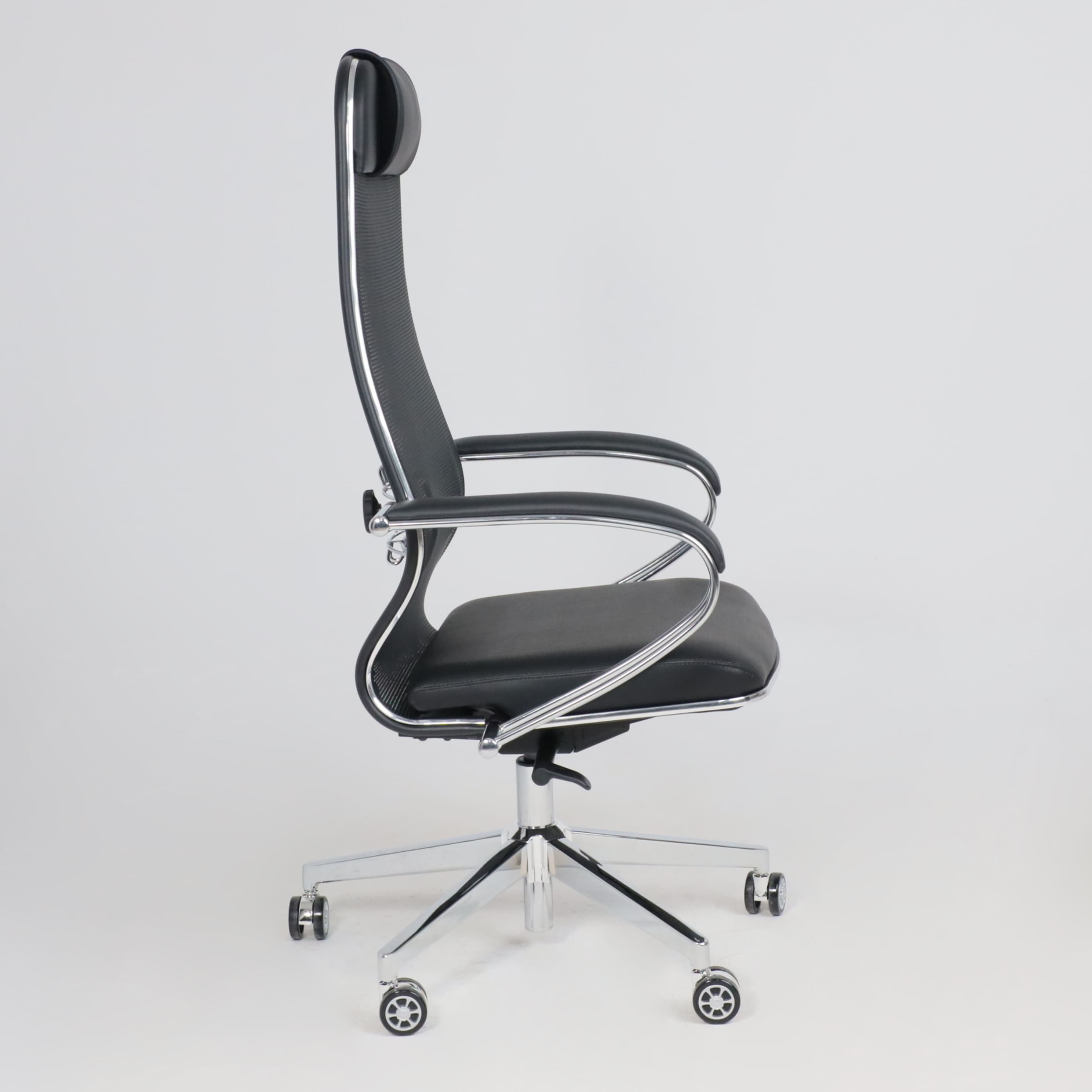 Компьютерное кресло для офиса. Материал сидения: экокожа. Механизм качания: TILT. Цвет: черный. Металлические подлокотники. Анатомичная форма спинки.