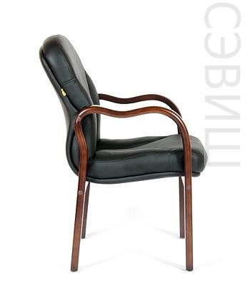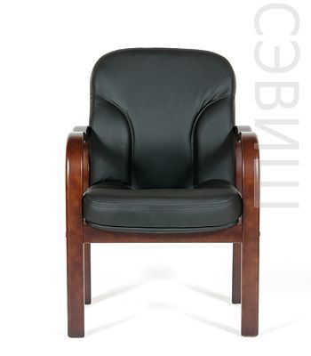 Данная модель отличается простой конструкцией и стильным дизайном. Внешним видом изделие большо походит на стул повышенной комфортабельности. Конструкция имеет четыре ножки и два подлокотника из дерева. Сиденье, оборудованное спинкой, выполнено из натуральной кожи, которая долгое время сохраняет свою привлекательность и целостность. Кресло подходит для приемных и переговорных комнат.