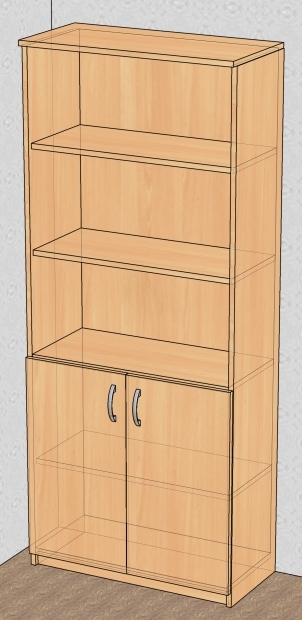 Шкаф офисный для документов полуоткрытый Е-13 1900*800*350 изготовлен из ламинированной ДСП. Все видимые кромки облицованы лентой ПВХ. Цвет ДСП – бук бавария.