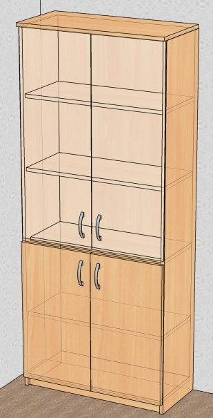 код 26833Шкаф с двумя отсеками: с остекленными и глухими створками.
