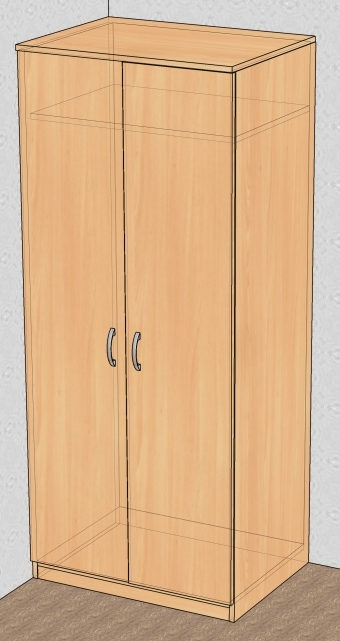 Шкаф офисный для одежды Ш1 1900*800*600 изготовлен из ламинированной ДСП. Все видимые кромки облицованы лентой ПВХ. Цвет ДСП – бук бавария.