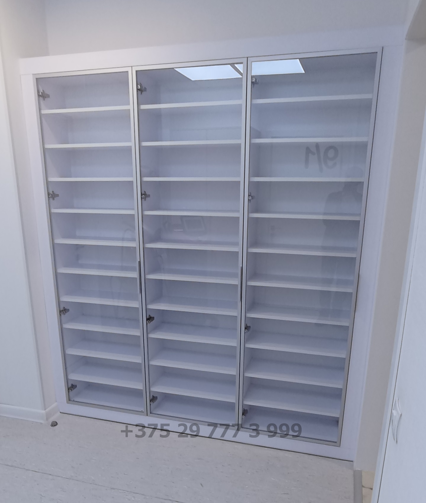 Трехдверный распашной шкаф с антресолью и полками для офиса