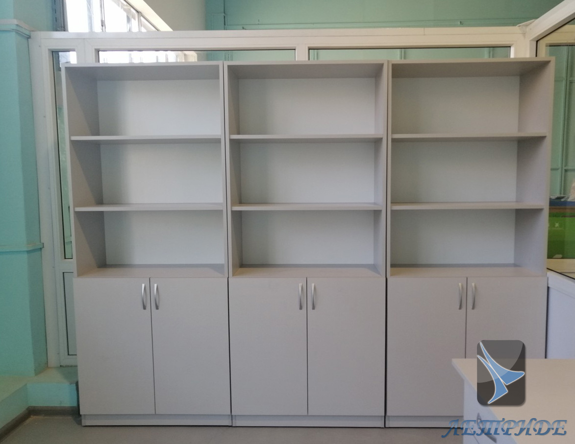 Стеллажи для офиса – очень нужная мебель. На открытых полках можно расположить книги, необходимые документы, даже декор, а за двумя распашными дверцами более крупногабаритные предметы.