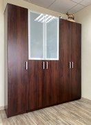 Трехдверный распашной шкаф с антресолью и полками для офиса