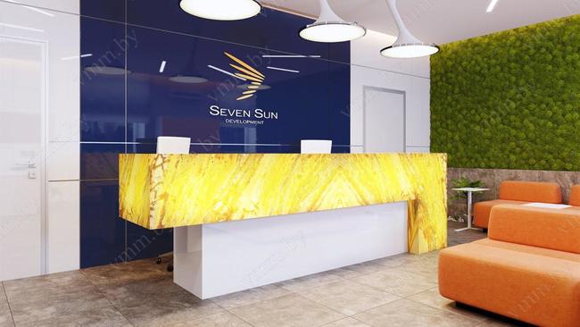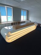 Оригинальный ресепшн с подсветкой станет прекрасным дополнением интерьера холла либо офиса. Приятные на вид формы и изгибы изделия позволят ему сочетаться с другой мебелью. Функциональность и простота являются главными достаоинствами данной модели. Выбор такой стойки с подсветкой заставит окружающих понять, что вы знаете толк в моде.