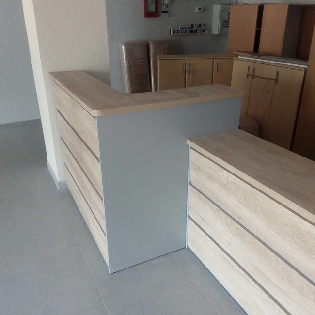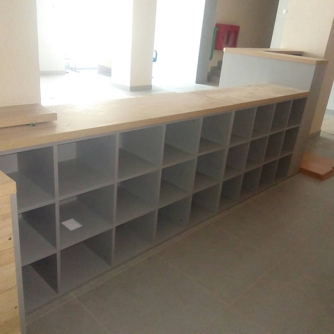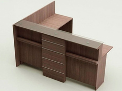 Стойка ресепшн в комплекте со стеллажом. Большое количество вместительных полок. Изготавливается под заказ по индивидуальному дизайн-проекту. Выбирайте размер, цвет, материалы, фурнитуру у производителя.