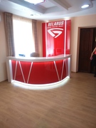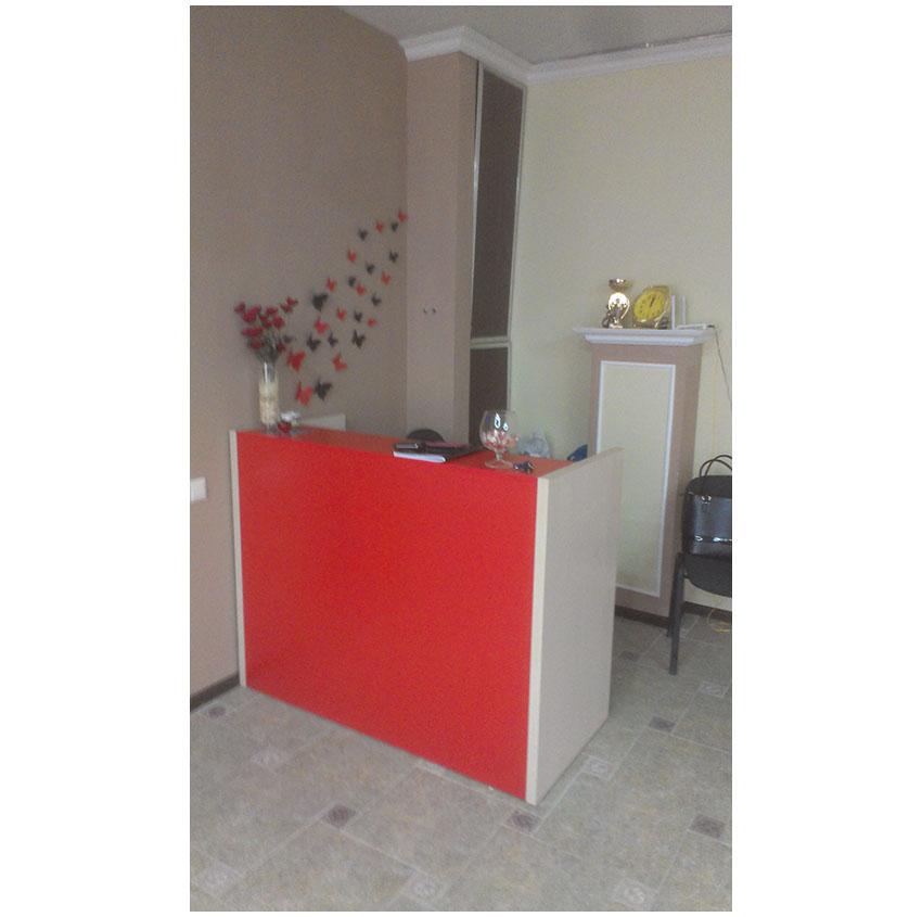 Стойка администратора изготовлена из ЛДСП и окрашена в красный цвет. Конструкция обладает высокой прочностью и устойчивостью. Рабочее место зонально распределено для наибольшего комфорта.