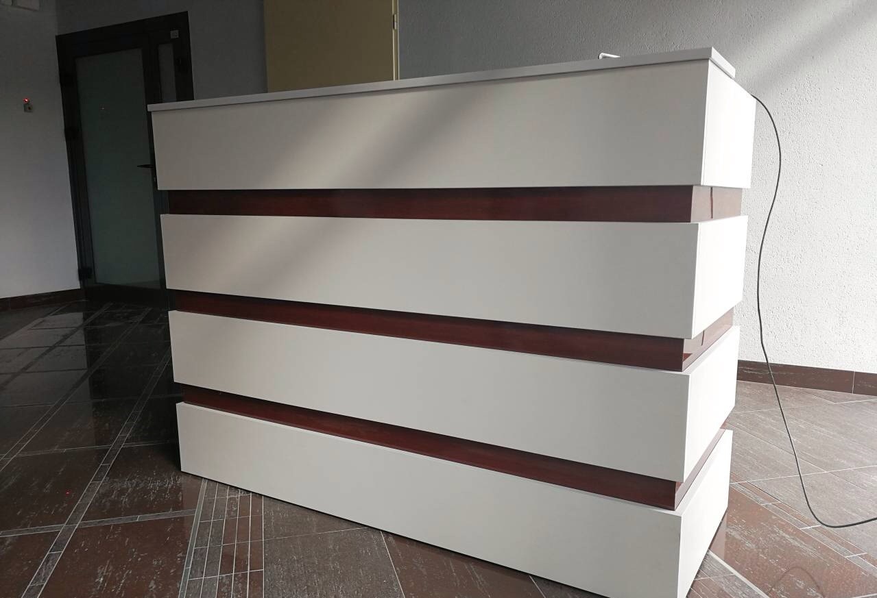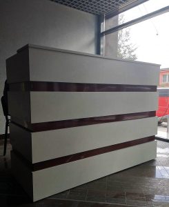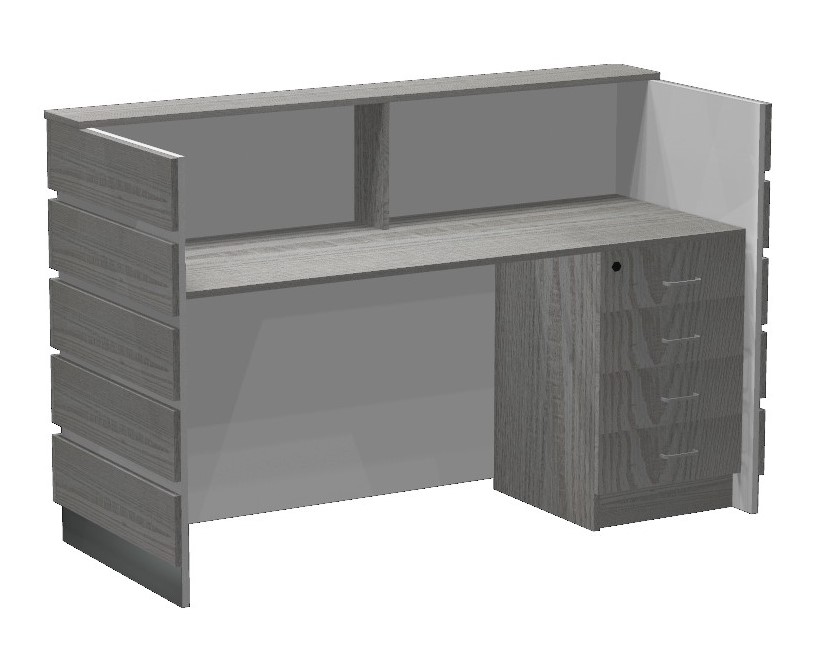 По заказу зону ресепшн можно дополнить тумбами, стеллажами, шкафами.