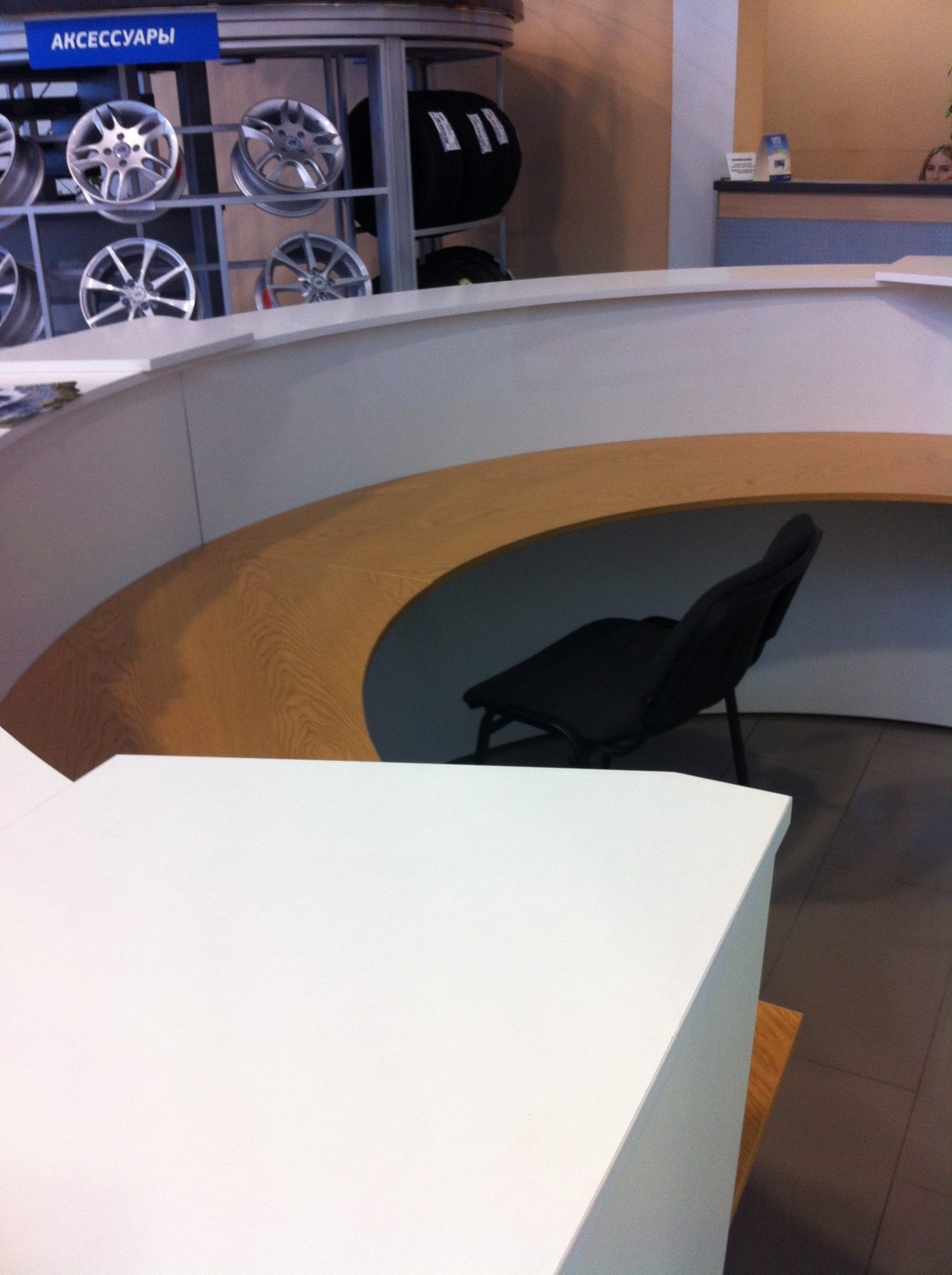 По заказу зону ресепшн можно дополнить тумбами, стеллажами, шкафами.
